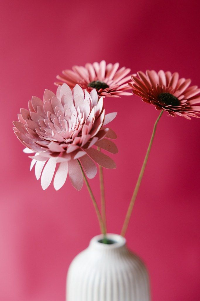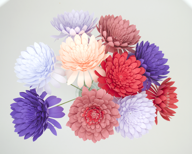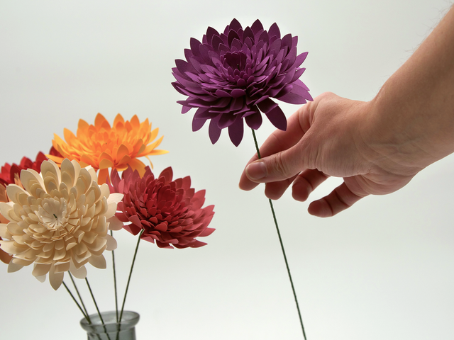Fleur de chrysanthème en papier dessiné par mes soins. Composition artisanale et durable. Disponible en diverses couleurs !