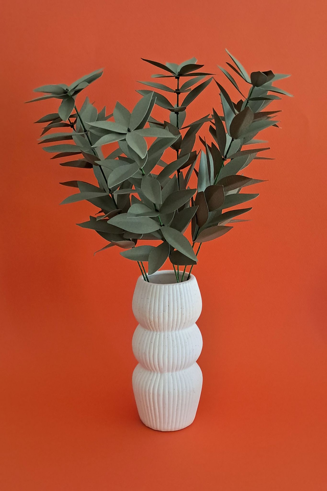 Branche de ruscus en papier dessiné par mes soins. Composition artisanale et durable. Coloris vert olive.
